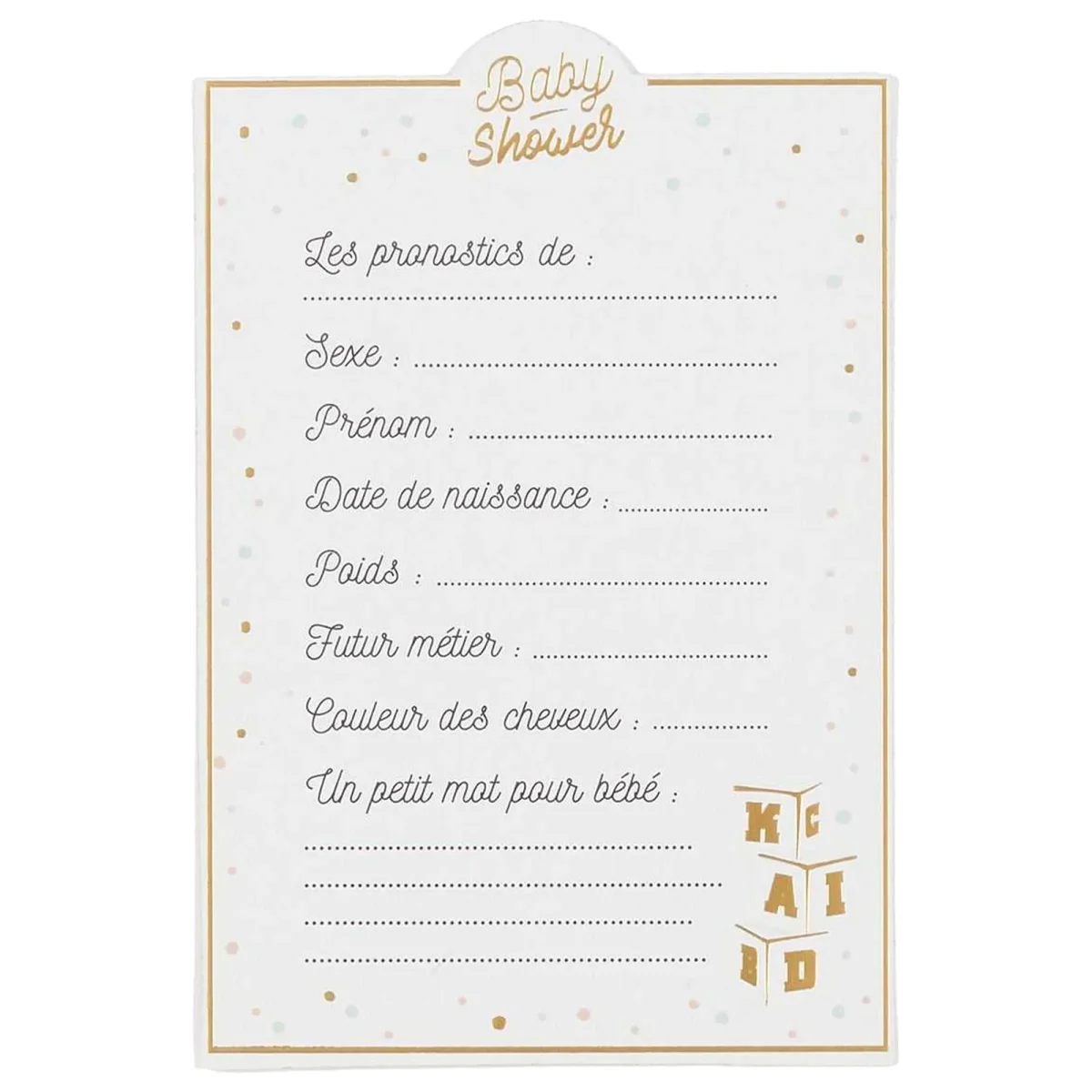 10 cartes de pronostics baby shower